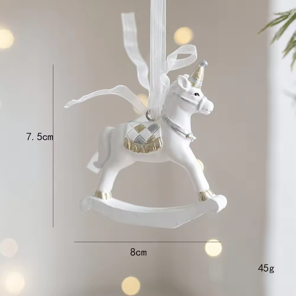 Scandinavian Style Resin Tree Pendants – Set Includes Elf, Bell & Wooden Horse Motifs