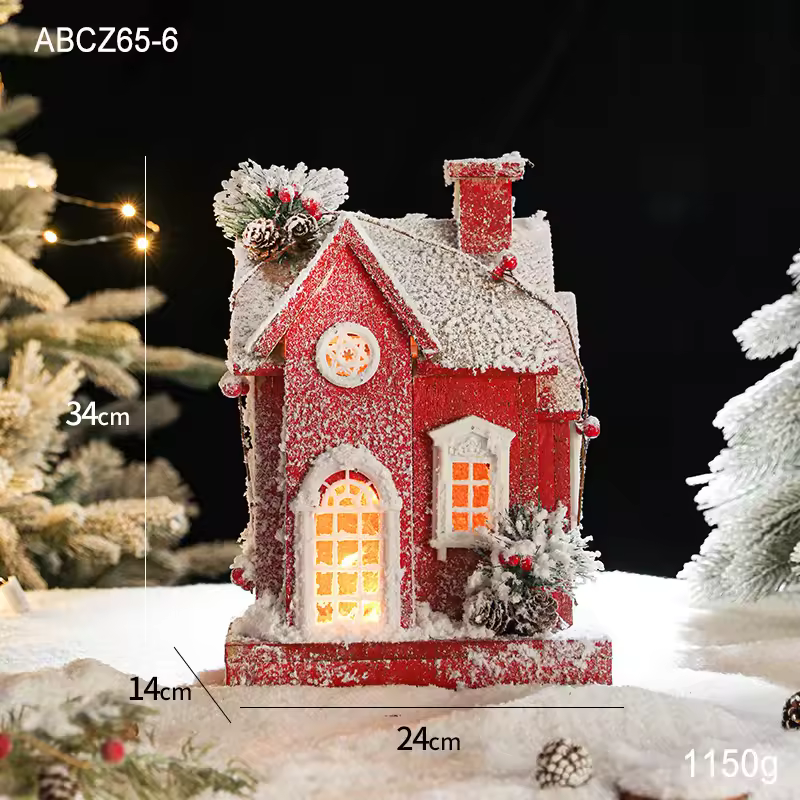 Lighted Wooden Christmas Village House – Glowing Windows, Snowy Finish, Hanging Style