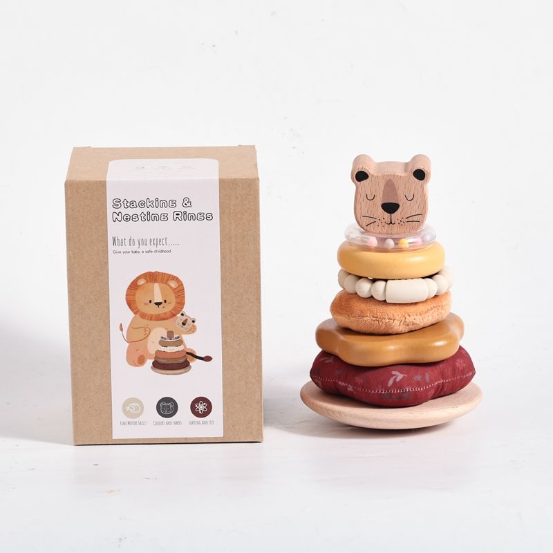 Customizable logo lion set column wood educational toys wholesale selling for children 2-4 years