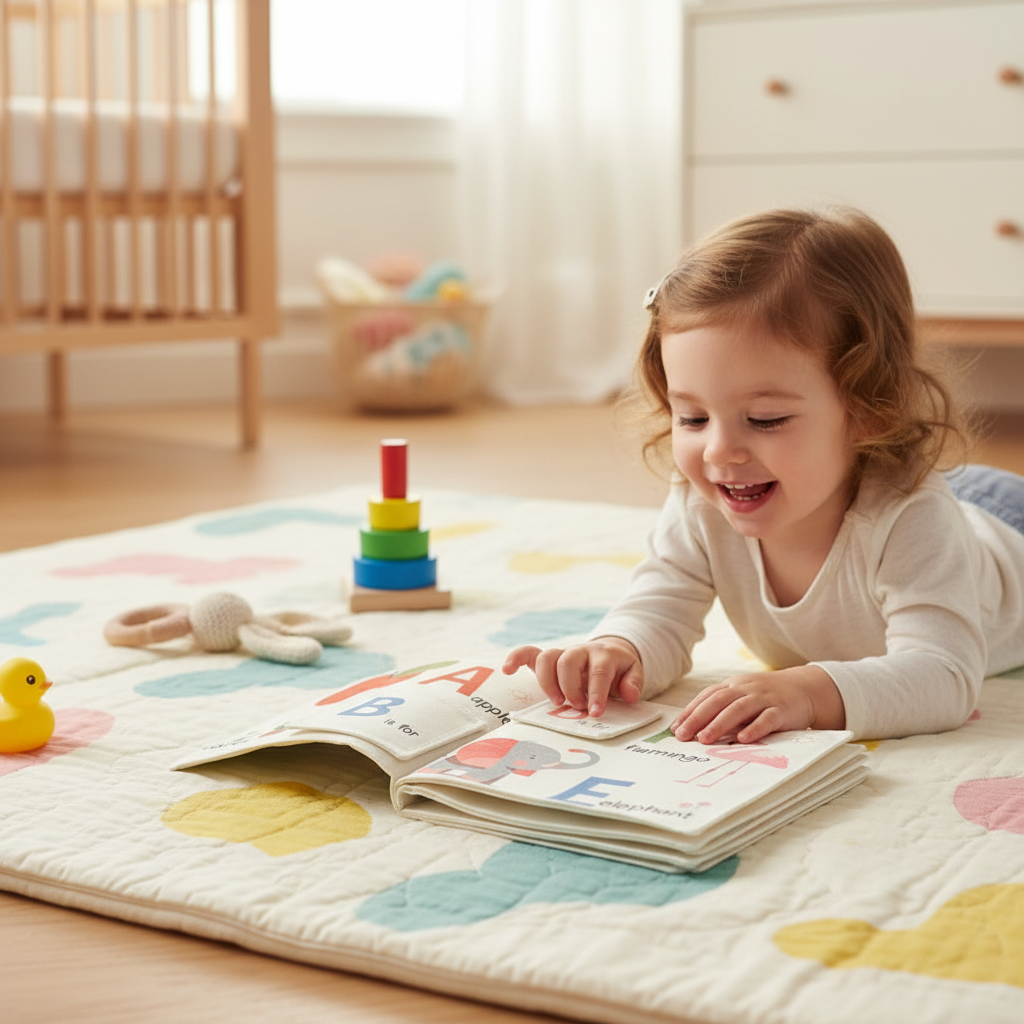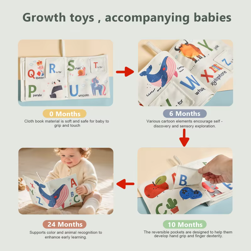 Kid-safe soft cloth book teaches English letters, perfect educational play for ages 0-6 years.